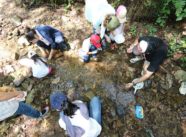 当社が東京都八王子市に所有する「高尾100年の森」では、事業活動で排出されるCO2の吸収源となる森林保全に取り組んでいます。また、子どもたちのための環境教育も行っています。