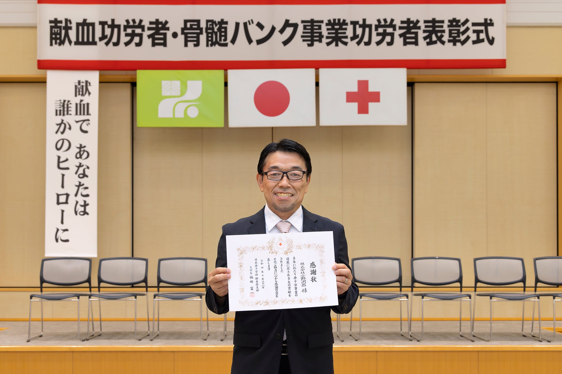 電子計測器の製造および販売を展開する株式会社小野測器(代表取締役社長 大越 祐史)は、2025年7月28日に栃木県庁で開催された「令和7年度献血功労者・骨髄バンク事業功労者表彰式」におきまして、日本赤十字社から「日本赤十字社栃木県支部長感謝状」を授受されました。