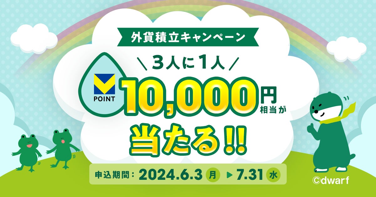 株式会社三井住友銀行(頭取CEO:福留 朗裕、以下「三井住友銀行」)は、 2024年6月3日(月)~2024年7月31日(水)の期間限定で「3人に1人、Vポイント10,000円相当が当たる!外貨積立キャンペーン」を実施いたします。