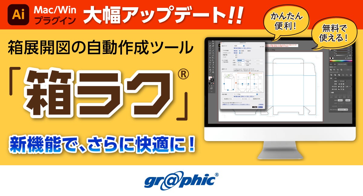 箱展開図の自動作成ツール「箱ラク®」が大幅アップデート!ネット印刷のグラフィックがAdobe Illustratorプラグイン「箱ラク®」の最新バージョンの提供開始。