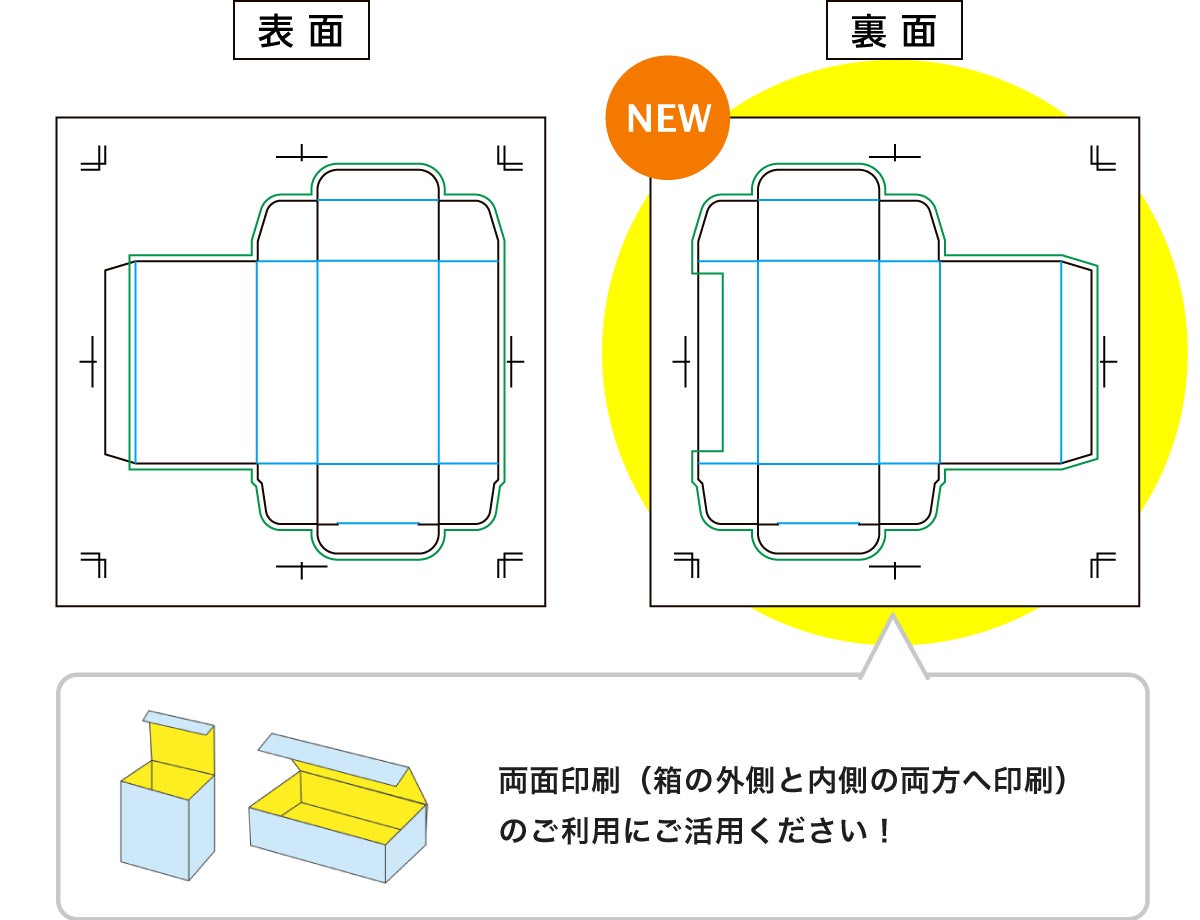 この他にも、機能の見直しを行い「幅」より「奥行」の方が長い箱や、ワンタッチ底の「幅」と「奥行」を最小35mmから作成できるようになりました。