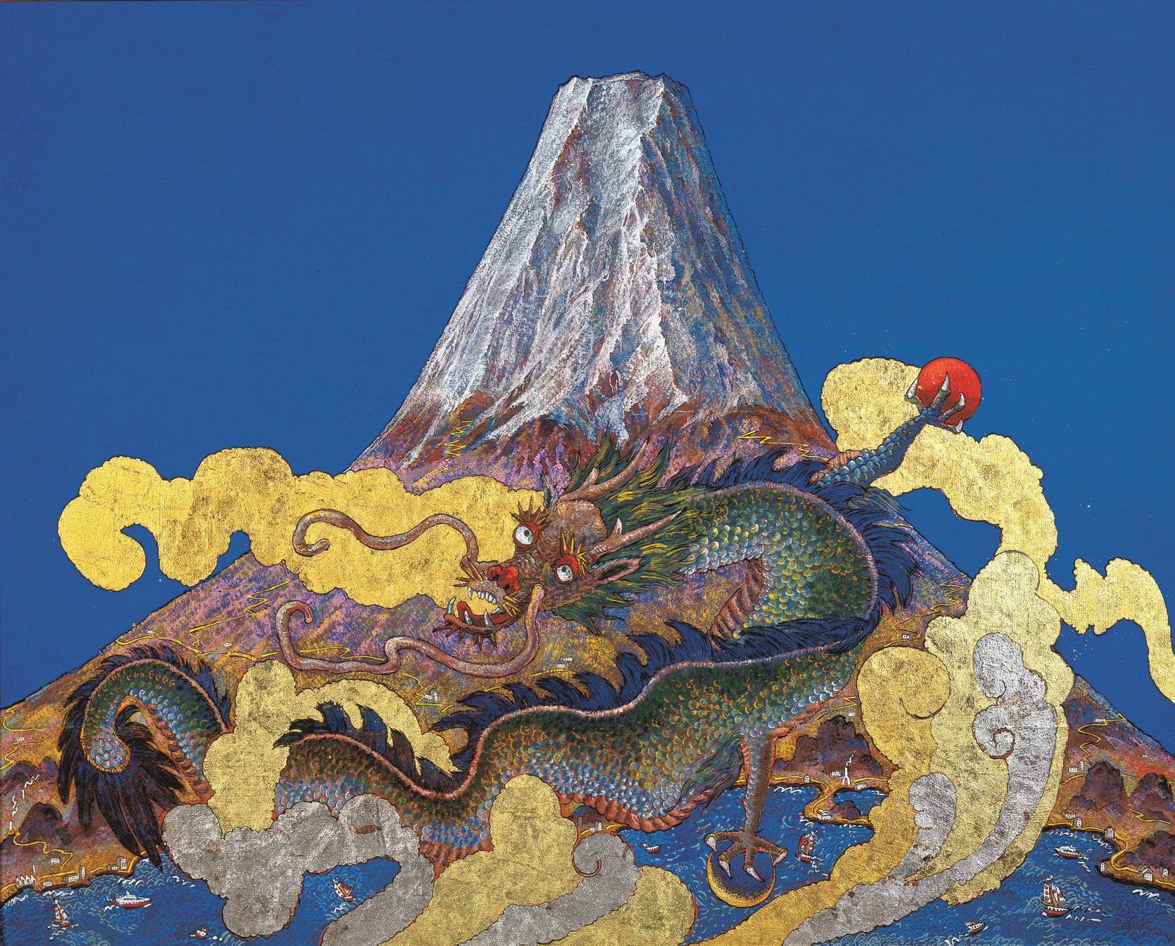今回、幸二氏と香菜子氏との共作である「生命輝く」、幸二氏の代表作「蒼天富嶽龍宝図」や桜島を描いた新作のほか、幸太氏や香菜子氏の作品など計約70点を展示予定。国内外の幅広い世代の絹谷ファンから、注目を集める展覧会となりそうだ。