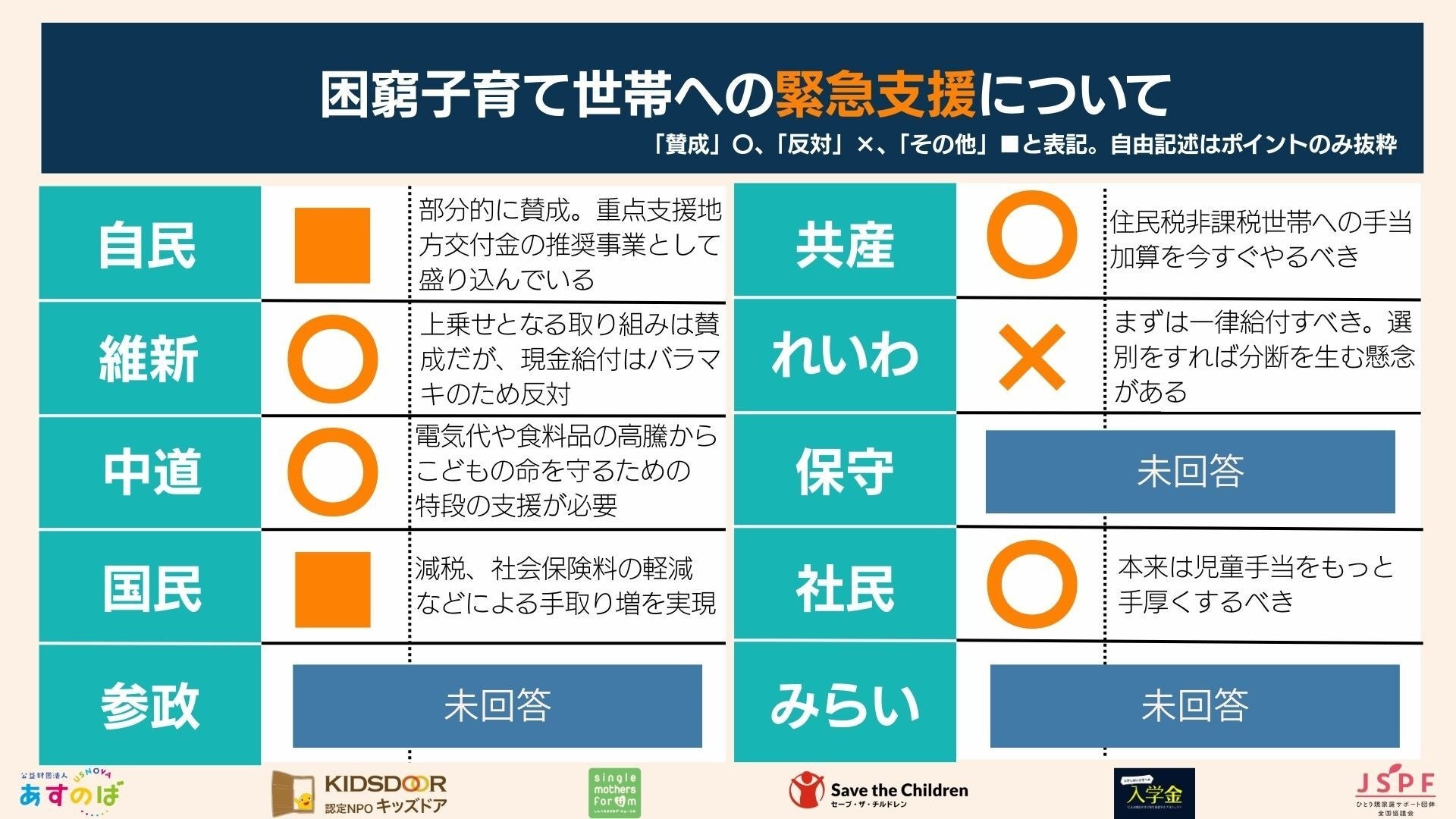 【2026衆議院選挙】こどもの貧困施策に関する政党アンケート調査各政党の回答結果〈速報〉発表