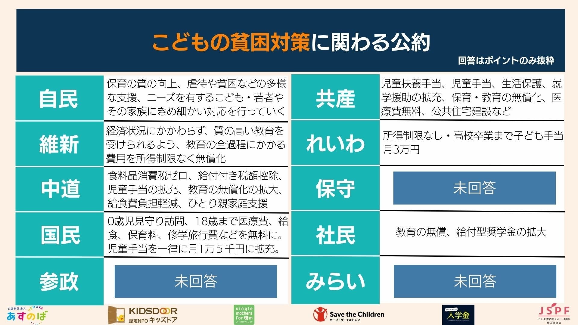 こどもの貧困対策6団体2026衆院選政策アンケート係
