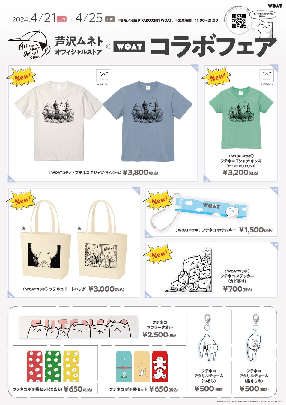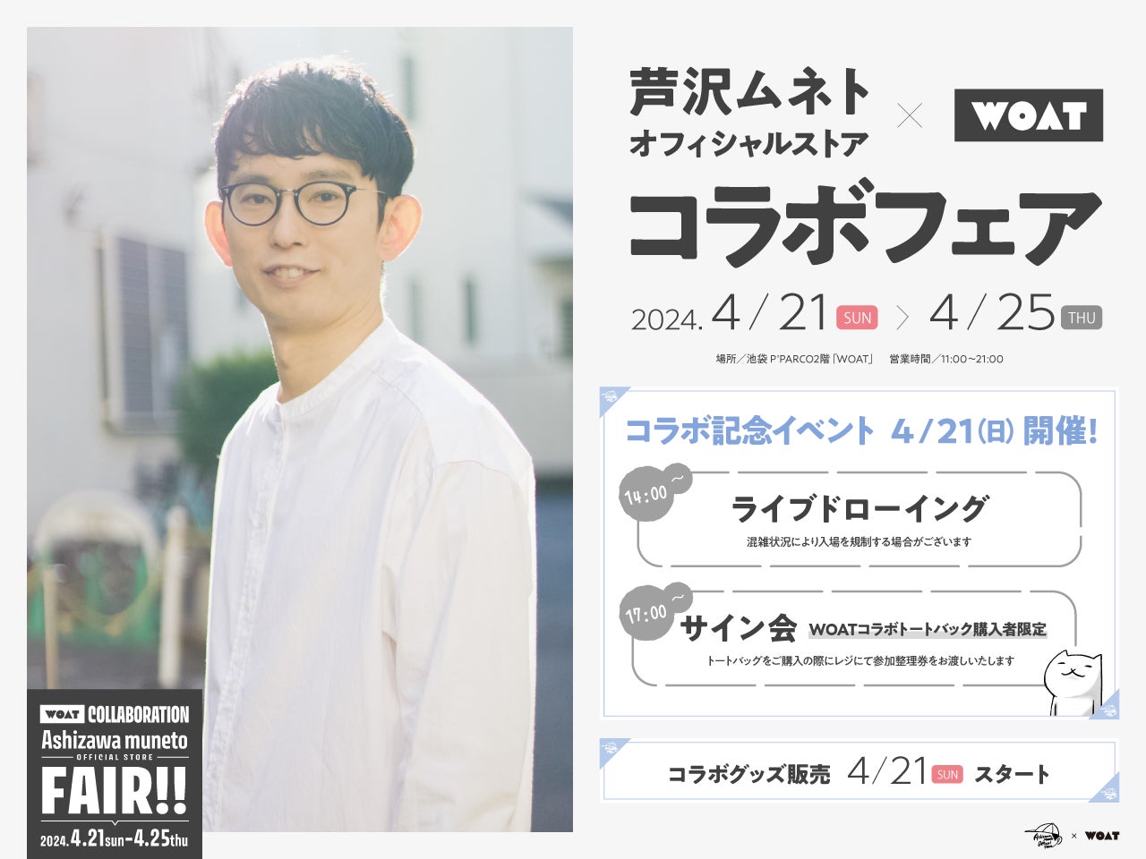 池袋 P'PARCO『WOAT』にて、「芦沢ムネト」とのコラボフェアを4月21日~25日まで期間限定開催!