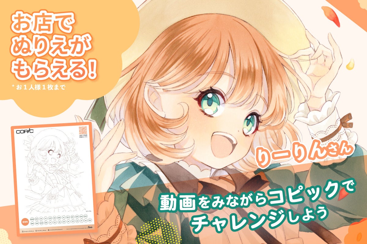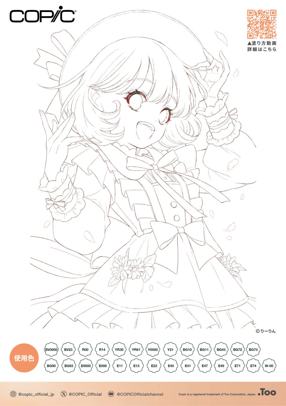 今回配布するぬり絵のイラストは、可憐な女の子のイラストと華やかな塗りで人気を集めるりーりんさんに描き下ろしいただきました。キャンペーン開始に伴い、描き下ろし線画にコピックで着彩していく工程を解説したメイキング映像もYoutubeに公開しました。りーりんさんによる解説つきで着彩テクニックをじっくり観ることができますので、動画もあわせてお楽しみください。