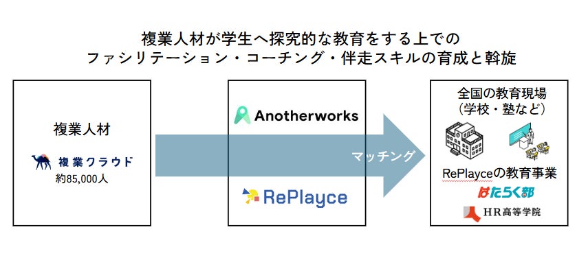RePlayce、アナザーワークスと業務連携のお知らせ。教育現場における複業人材の活用促進、次世代人材の育成や教師のスキルアップをめざす取り組み
