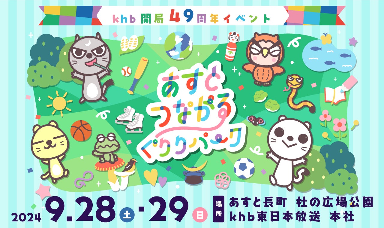 株式会社東日本放送(本社・仙台市太白区)は、9月28日(土)・29日(日)の2日間、あすと長町 杜の広場公園やkhb本社で、khb開局49周年イベント「あすとつながるぐりりパーク」を開催します。
