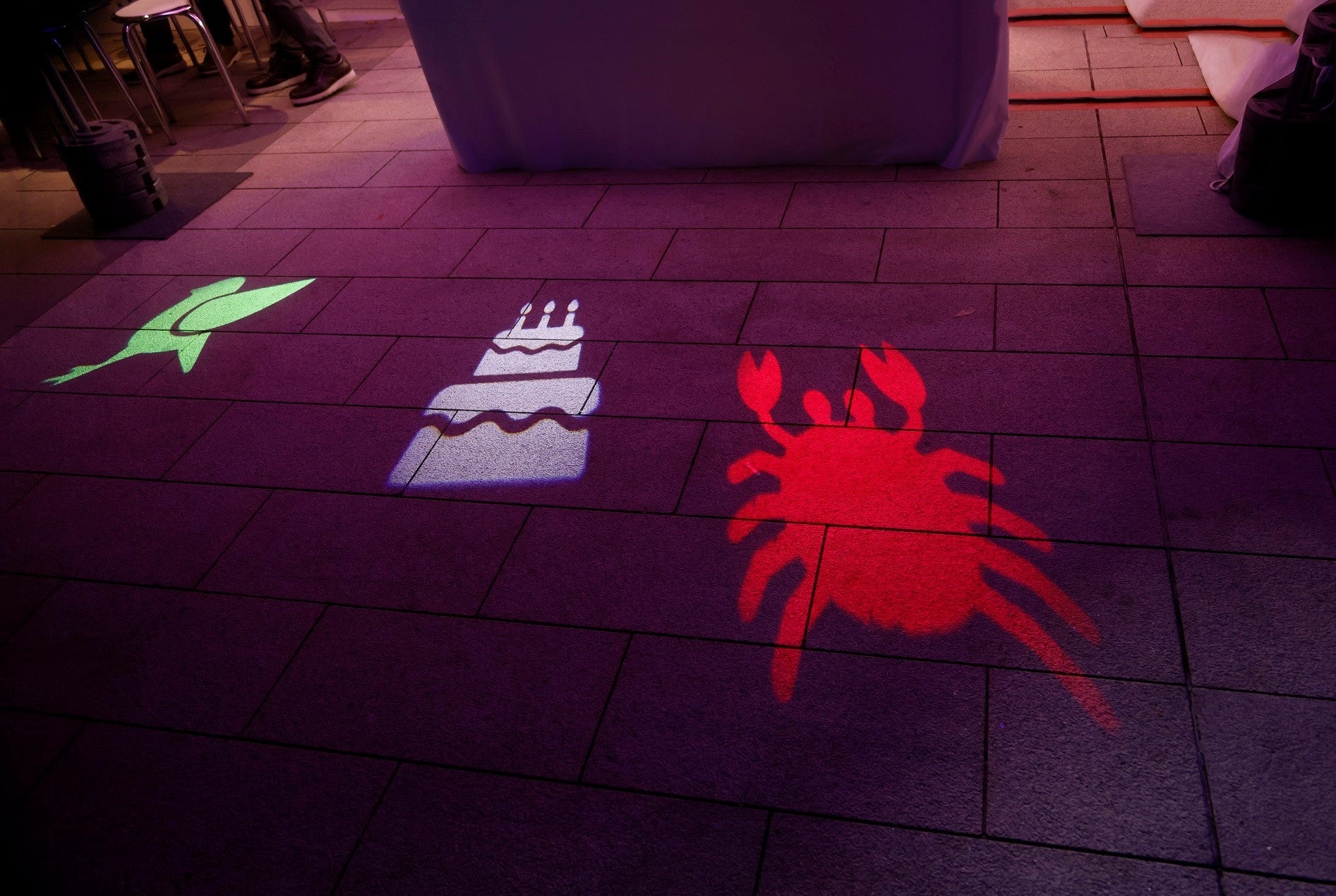 工場などの産業分野で使われるLED描画ユニットを、動物や食べ物など親しみやすい絵柄の投影でお楽しみいただけます。