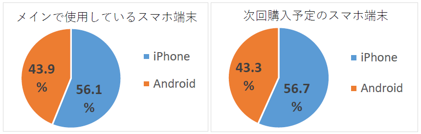 ・メインで使用しているスマホ端末は「iPhone」(56.1%)