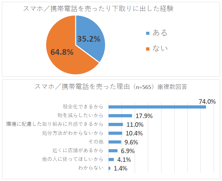 「スマホ/携帯電話を売ったり下取りに出したことがある」は35%にとどまる
