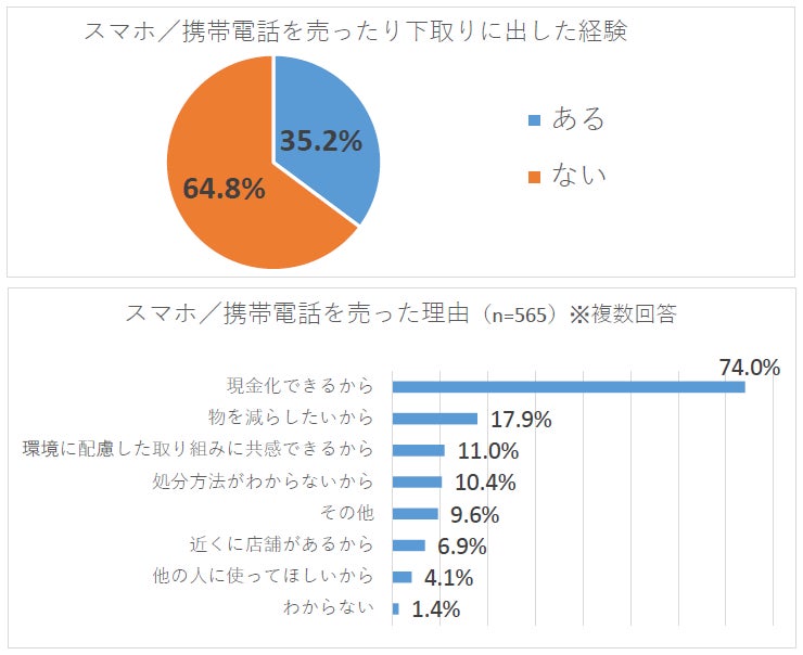 ・スマホや携帯電話を売った/下取りに出した経験は「ある」(35.2%)