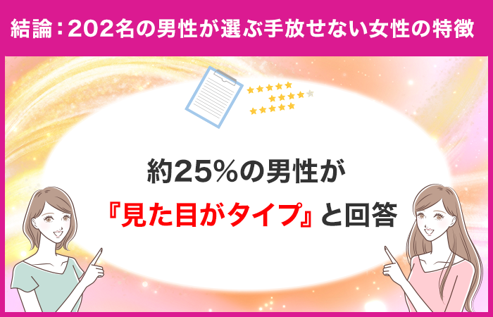 結論:多くの男性が『見た目がタイプ』の女性にハマった!