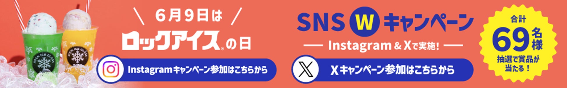 合計69名に景品が当たる「6月9日はロックアイスの日Wキャンペーン」実施