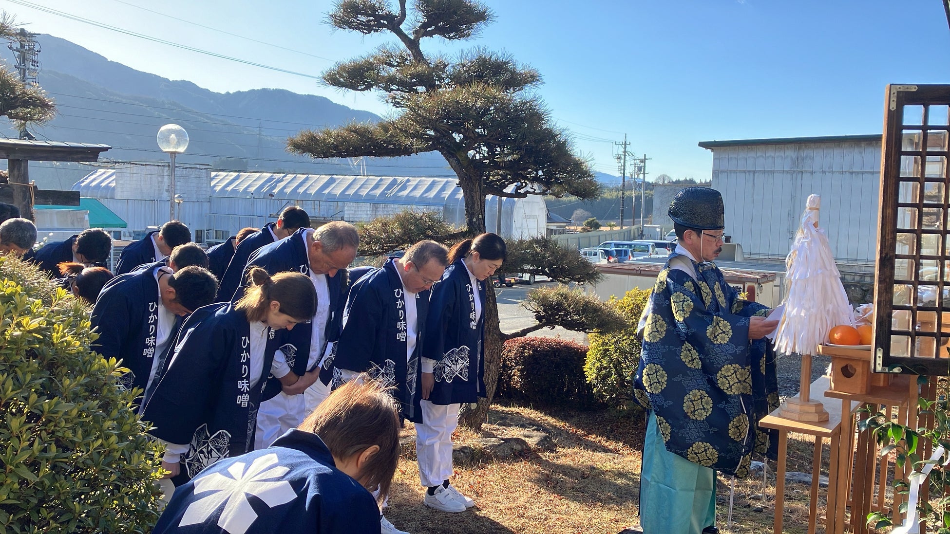 ひかり味噌󠄀株式会社(長野県諏訪郡下諏訪町、代表取締役社長 林善博、以下 当社)は、伝統的な手法を用いた、年に一度の味噌󠄀の仕込み「大寒仕込み」を2025年1月31日(金)に、長野県上伊那郡飯島町の飯島グリーン工場にて実施いたしました。当社が1985年より守り続ける伝統行事「大寒仕込み」は、40回目の開催となりました。味噌󠄀づくりの営みができることへの感謝や、先人たちの味噌󠄀にかけた想いの伝承、さらには、ものづくりの本質の継承という意義をもち、社員が味噌󠄀づくりの原点に立ち返ることができる場所です。今年は、味噌󠄀の醸造部門以外の社員も技術を継承いたしました。また、イギリスの取引先にもご参加いただき、伝統的な技術や工程を通して、当社の味噌󠄀づくりに対する真摯な想いをお伝えいたしました。
