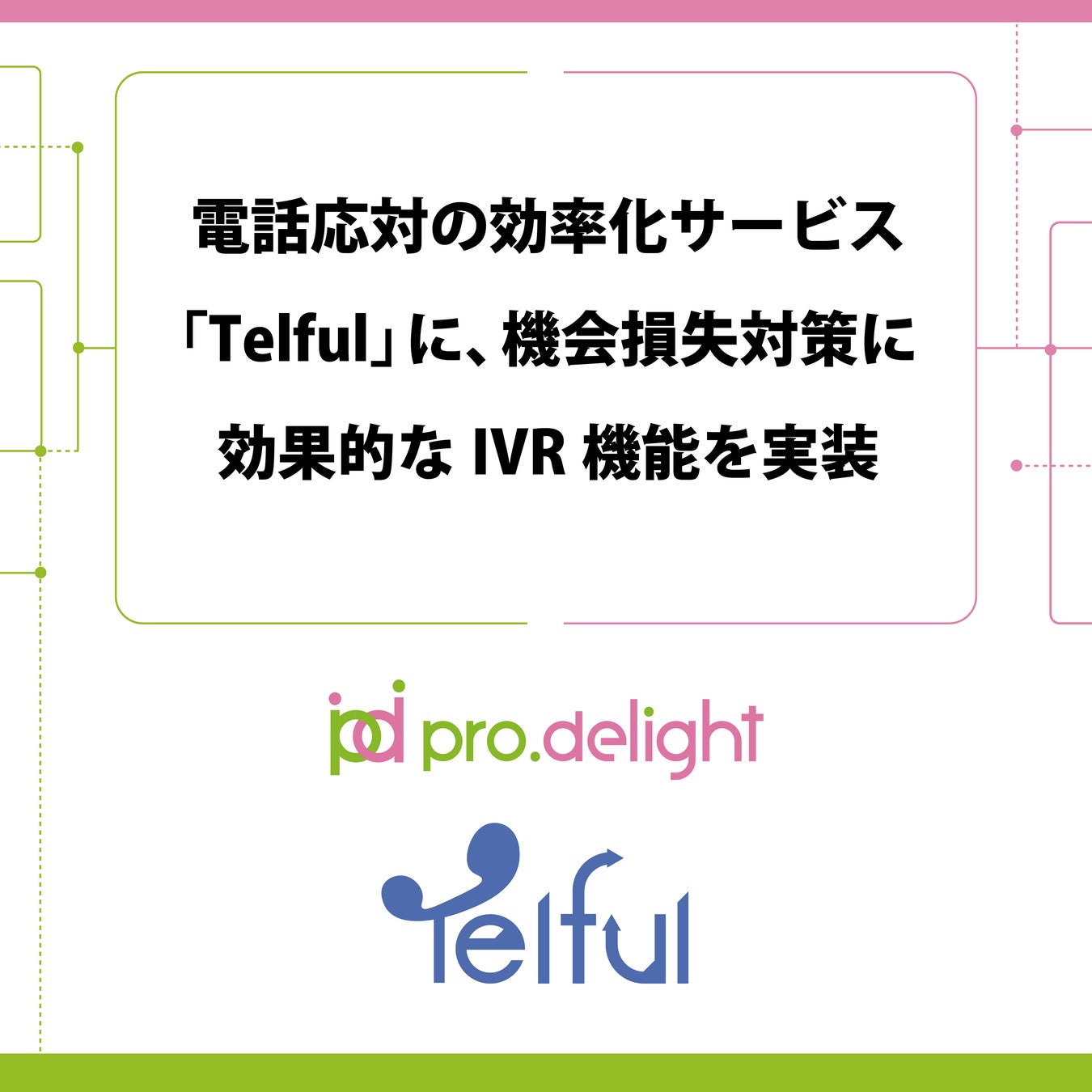 電話のDXを推進する株式会社プロディライト(大阪市中央区:代表取締役社長 小南 秀光、証券コード:5580、以下プロディライト)は2025年1月24日、わずらわしい電話をシャットアウトし、顧客応対と業務の効率化を両立させるサービス「Telful (テルフル) powered by INNOVERA」にて、IVR(音声自動応答システム)機能を実装しました。