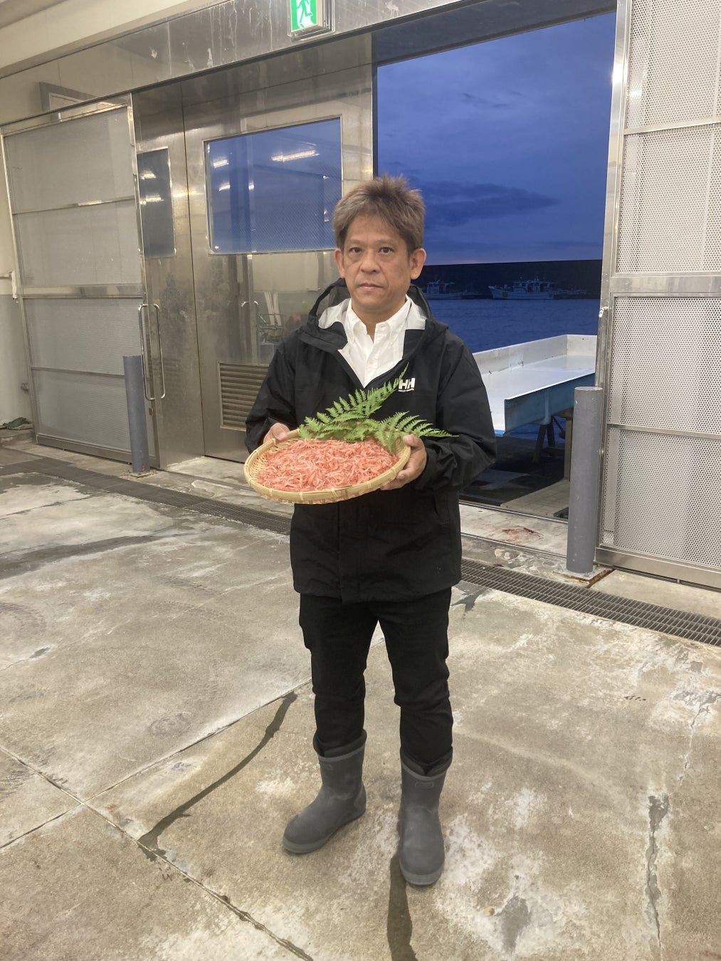 秋漁が6日遅れて始まりました。少し時期が早いのもあってか魚体は少し小さいですが、今後、漁を重ねていくとえびの成長もあるので、より大きな魚体の群れを捕獲できることを期待したいです。