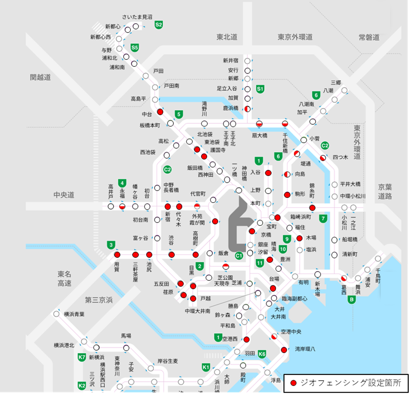 首都高速道路出入口や主要観光地周辺など14か所にジオフェンシングを導入し、誤進入をシステムで未然に防止しています。