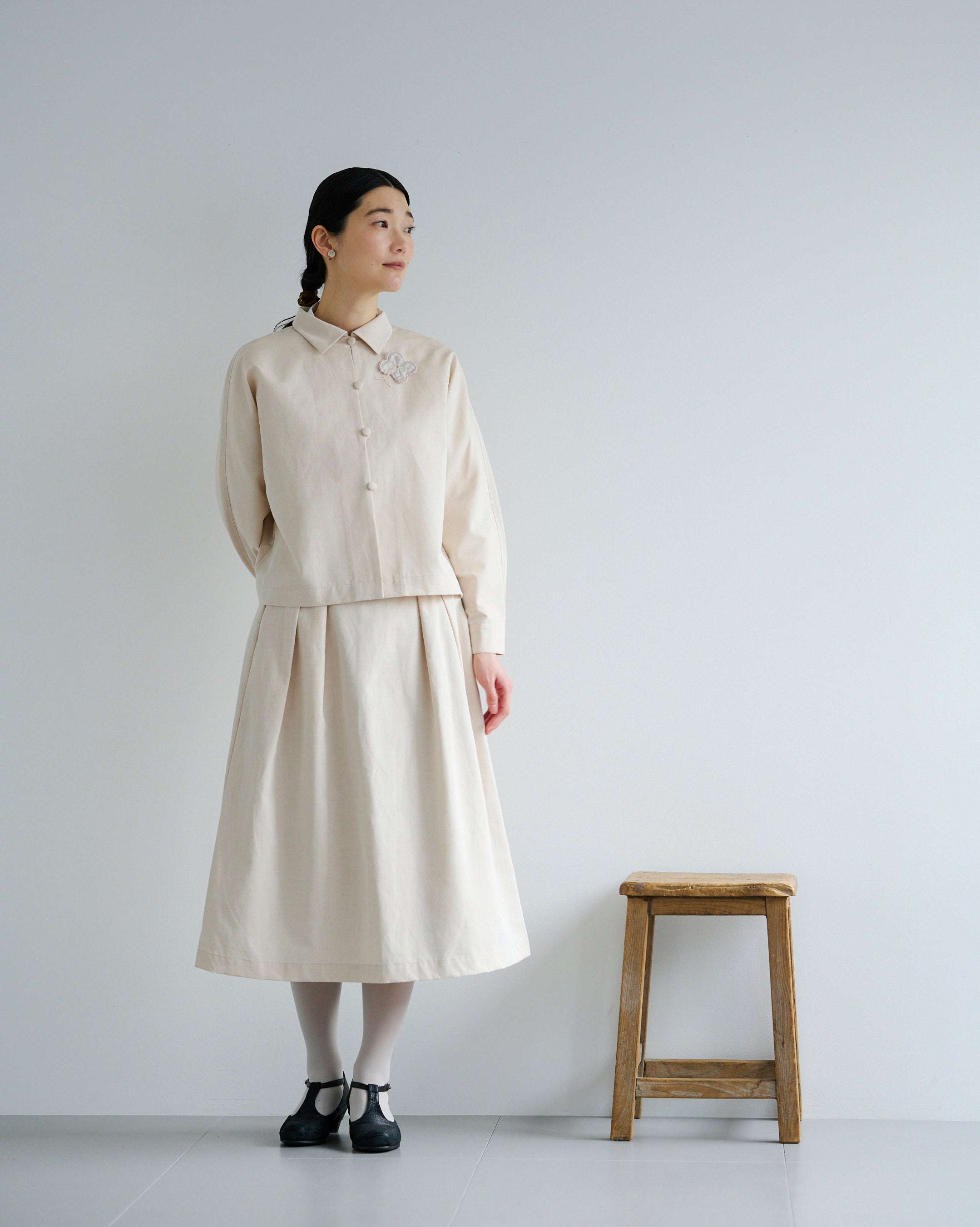 ■パンツ:「コットンラミータックスカート / ベージュ」 22,000円(税込)