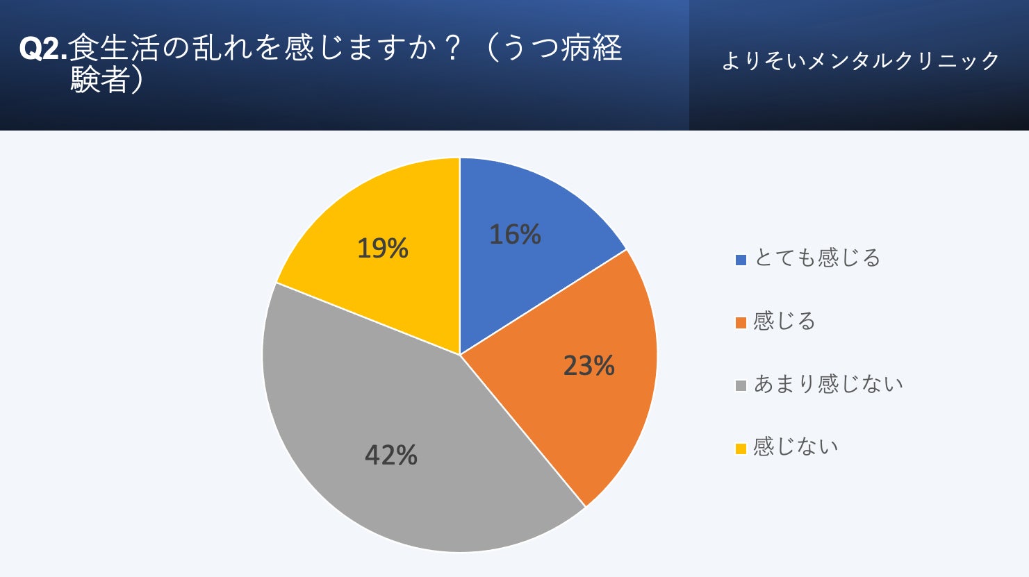 うつ病経験者に対して、日頃の食生活の乱れについて調査をしました。