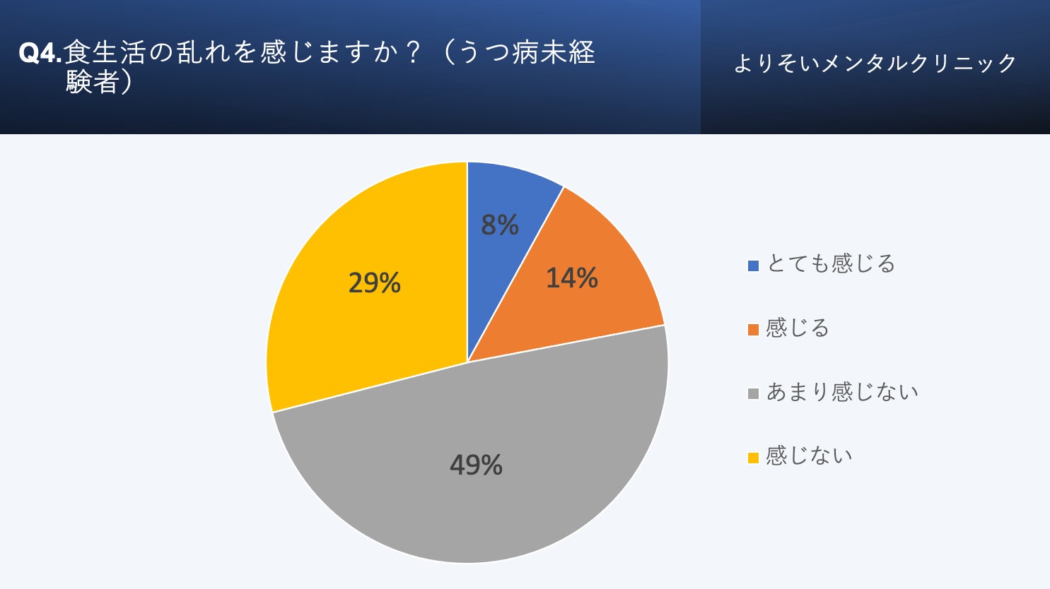 うつ病未経験者に対して、日頃の食生活の乱れについて調査をしました。
