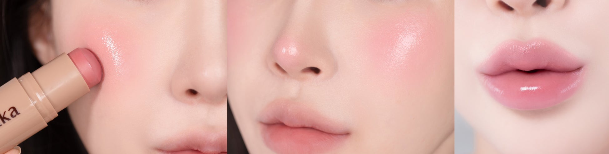紫外線からお肌を守りながら、ぼかすだけで自然な血色をプラスします。お家でも外出先でも、軽く転がすようにお肌にのせて、指先でやさしく“トントン”とタッチするだけで完成する多機能チーク。