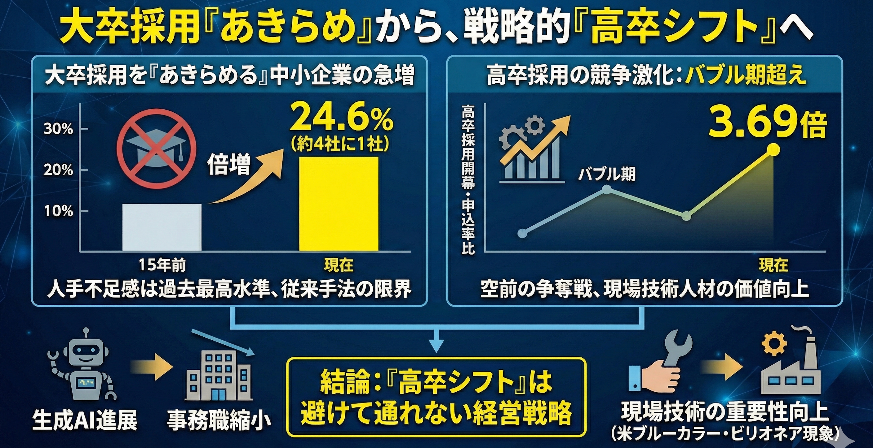 従来の手法に限界を感じている企業にとって、今まさに「高卒シフト」は避けて通れない経営戦略となっています。