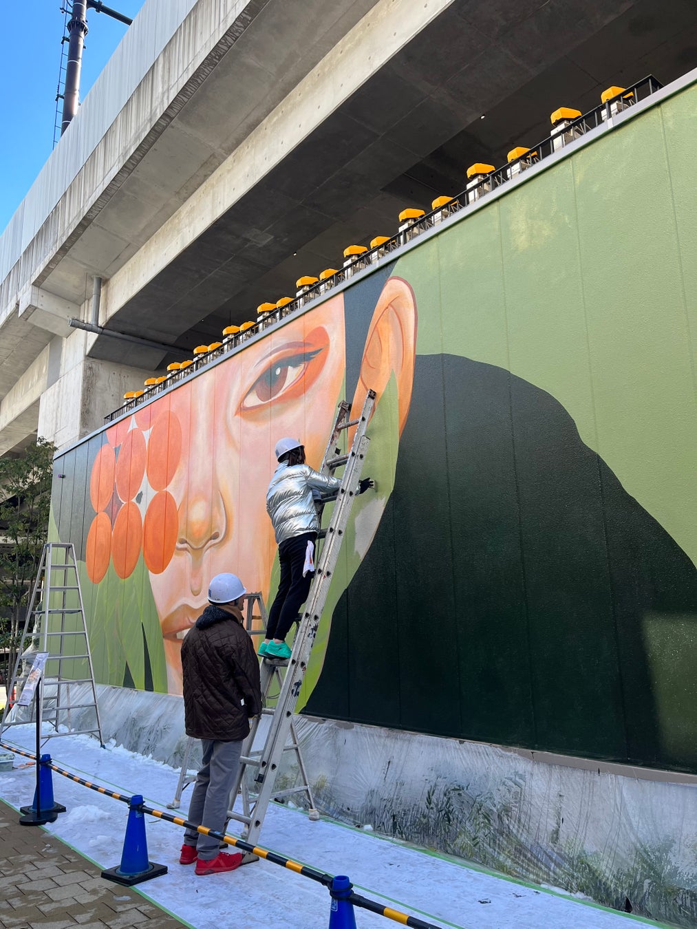 ミカン下北B街区の大きな壁面をキャンバスに、ライブペイントを実施。 |