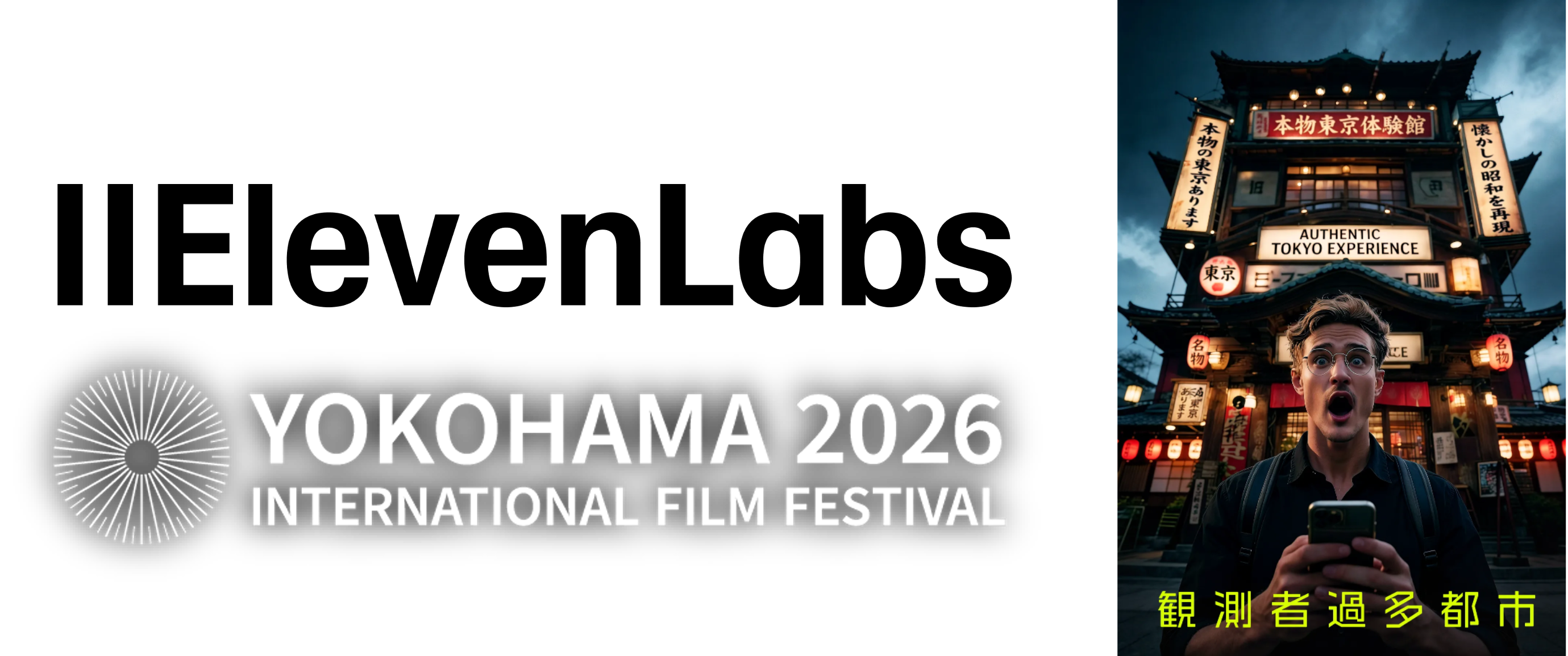 音声AI技術のグローバルリーダーであるイレブンラボジャパン合同会社(本社:東京都千代田区、Japan & Koreaゼネラルマネージャー:田村 元、以下「イレブンラボ」)は、2026年5月1日から5日まで開催される横浜国際映画祭に協賛し、会期中のイベント会場における場内アナウンス音声を提供します。あわせて、映画監督・山口ヒロキ氏によるイレブンラボ活用作品『観測者過多都市』が「イレブンラボ推薦作品」として上映される予定です。