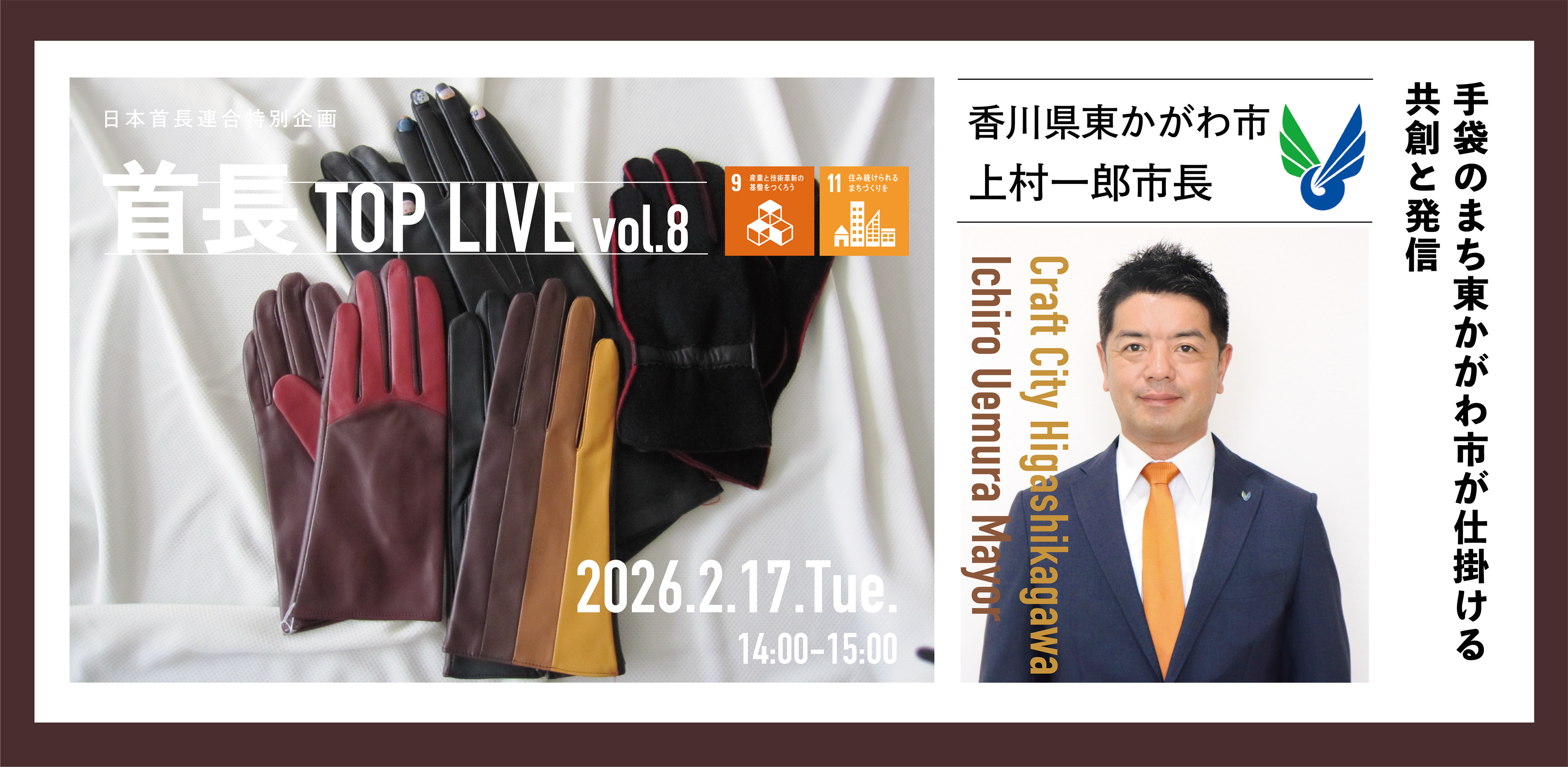 地方創生を通じて、日本の未来社会を創造する首長連合(以下「日本首長連合」)は、2026年2月17日にオンライン開催で、全国各地の首長が自ら「地域の今」を語る、首長TOP LIVE vol.8を開催します。