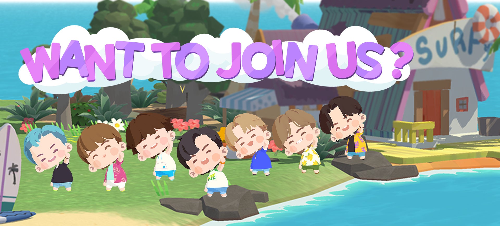 「BTS Island:インザソム」はBTSメンバー(RM, JIN, SUGA, J-HOPE, JIMIN, V, JUNG KOOK)と居心地のいい島を探検しながら、マッチ3パズルをお楽しみいただけるパズルアドベンチャーゲームです。