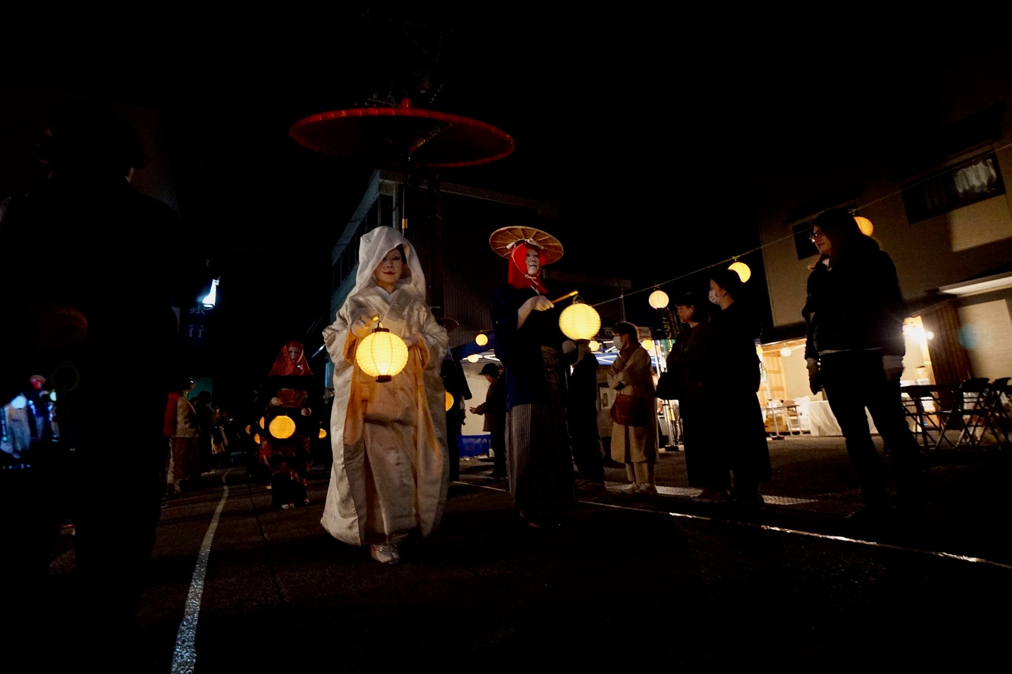赤岡の町を妖しく美しい狐の嫁入り行列が練り歩く「狐の夜市」開催【イベントレポート】