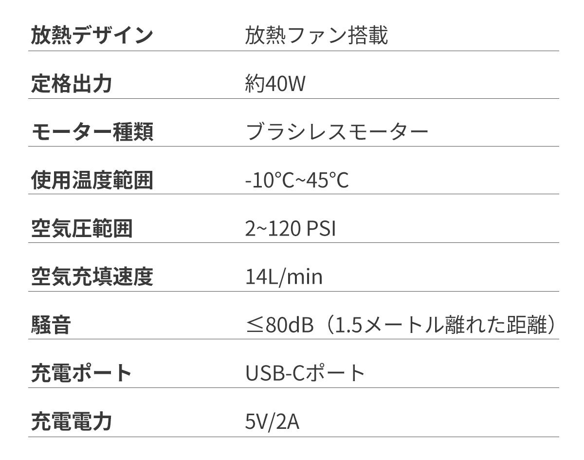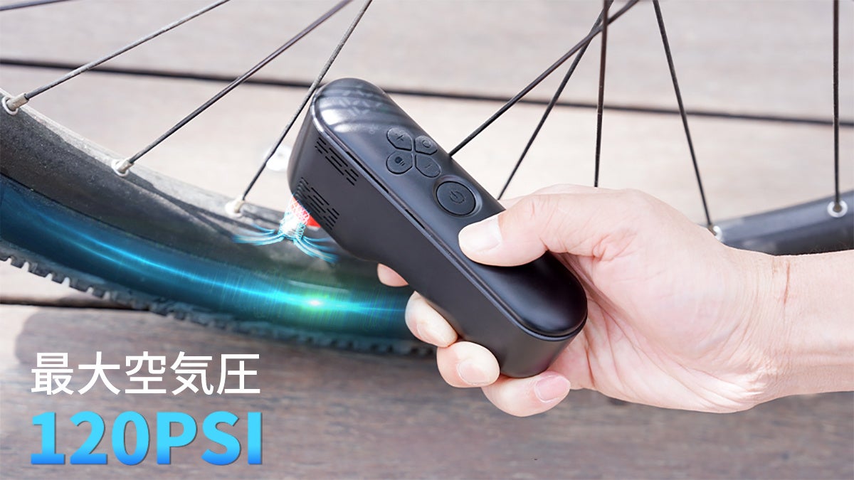 小さい見た目にふさわしくない強力なモーターが搭載されており、最大対応空気圧はなんと120PSI!ボールやマウンテンバイクなどはもちろん、高い空気圧が必要なロードバイクやオートバイにも手間をかけずに素早く空気入れ可能!