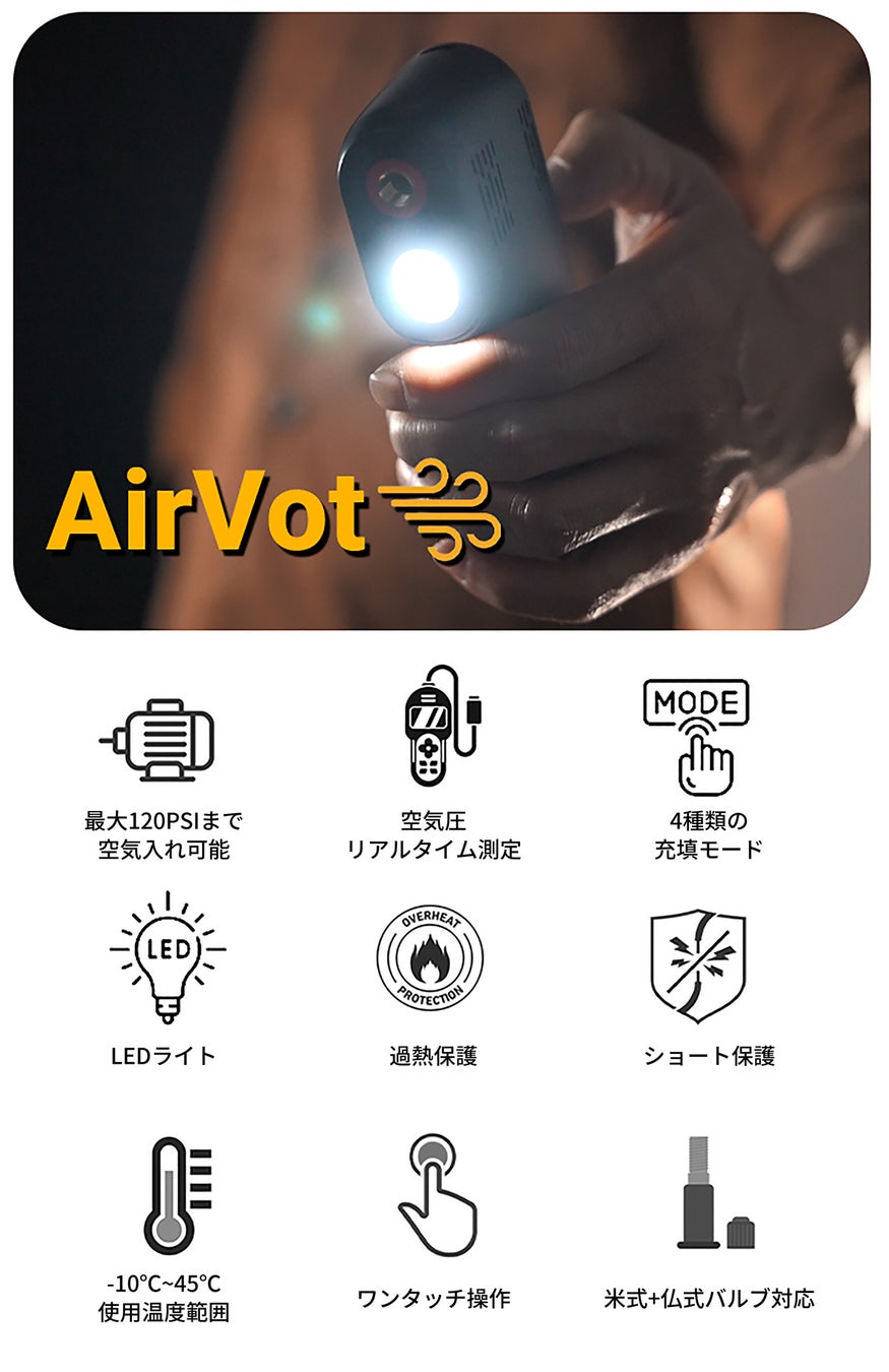【サイクリスト必見!】自転車&バイクのタイヤやボールの空気入れに特化した、指先で簡単に掴める超ミニエアーポンプ「AirVot」。ディスプレイやLEDライト、自動停止など魅力的な機能が満載されており、あなたのサイクリングを全力サポートできます。革新的なガジェットとして、発売前から大きな注目を集めています。