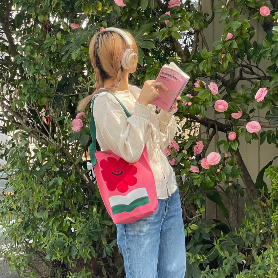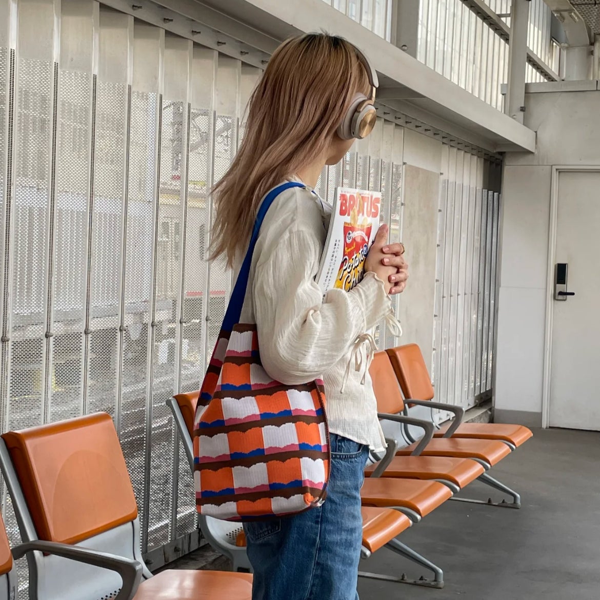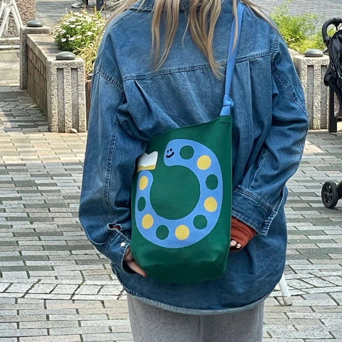 ファッションのワンポイントや差し色としてもおすすめの作品です。ショルダーの長さは調節可能で、中身の重さに合わせてぴったりの位置で持ち運べます。