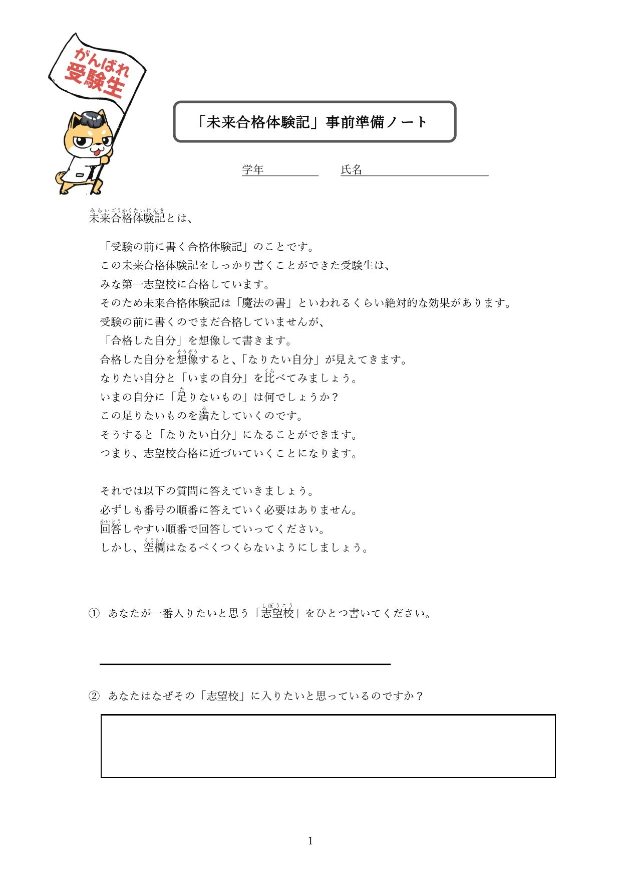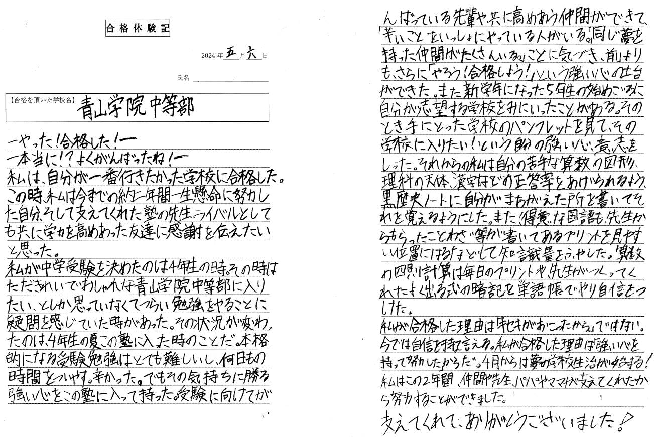 「未来合格体験記」は、受験本番前に“合格した自分”の視点で体験記を書くという手法です。