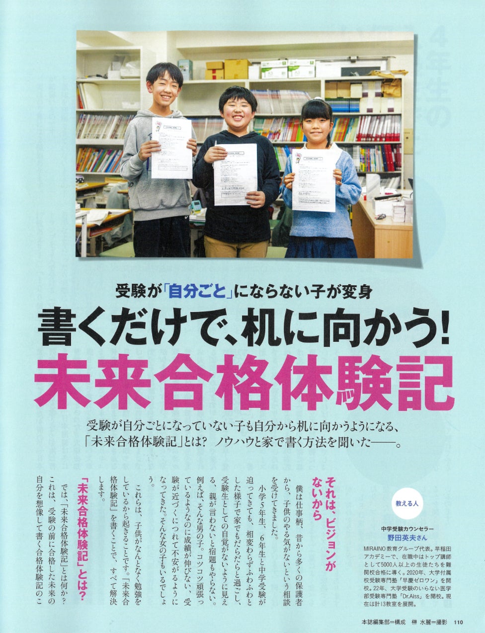 体験記を書いた生徒の80%が早慶付属中学に合格!「未来合格体験記(魔導の書)」「合格した未来の姿」から逆算して今を生きるマインドセットへとアップデート