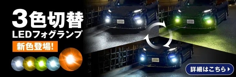 今回のセールの目玉商品は、「トリチェン」の愛称で親しまれ、SNSやクルマ好きが集まるサイト「みんカラ」で4年連続年間大賞を受賞した「3色切り替えLEDフォグランプ」です。