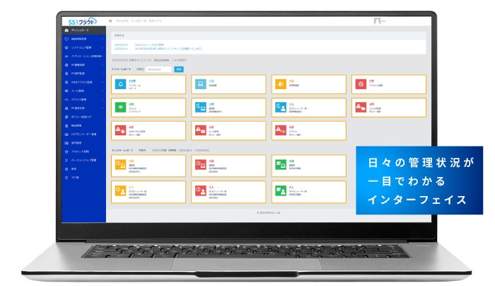 SS1クラウドは、PCやサーバー、ソフトウェアなど組織内のIT資産管理に加え、デバイス制限、ログ管理などのセキュリティ対策もおこなえるクラウドサービスです。