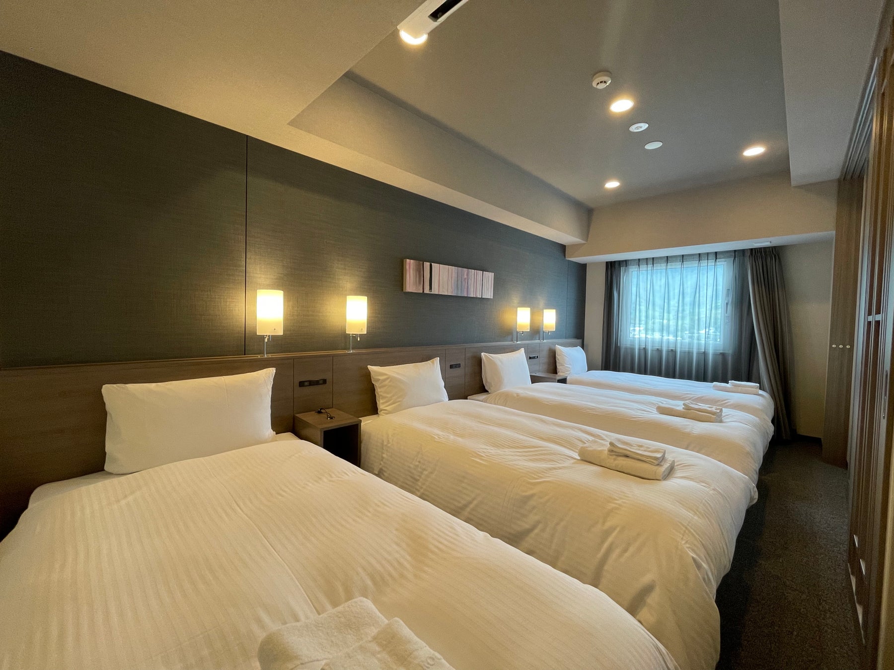 客室はすべてGrand仕様。豊富なアメニティを取り揃え、充実したバイキング朝食をお楽しみいただけます。上層階には定員4名のお部屋もご用意。家族連れのお客様もゆったりお過ごしいただけます。