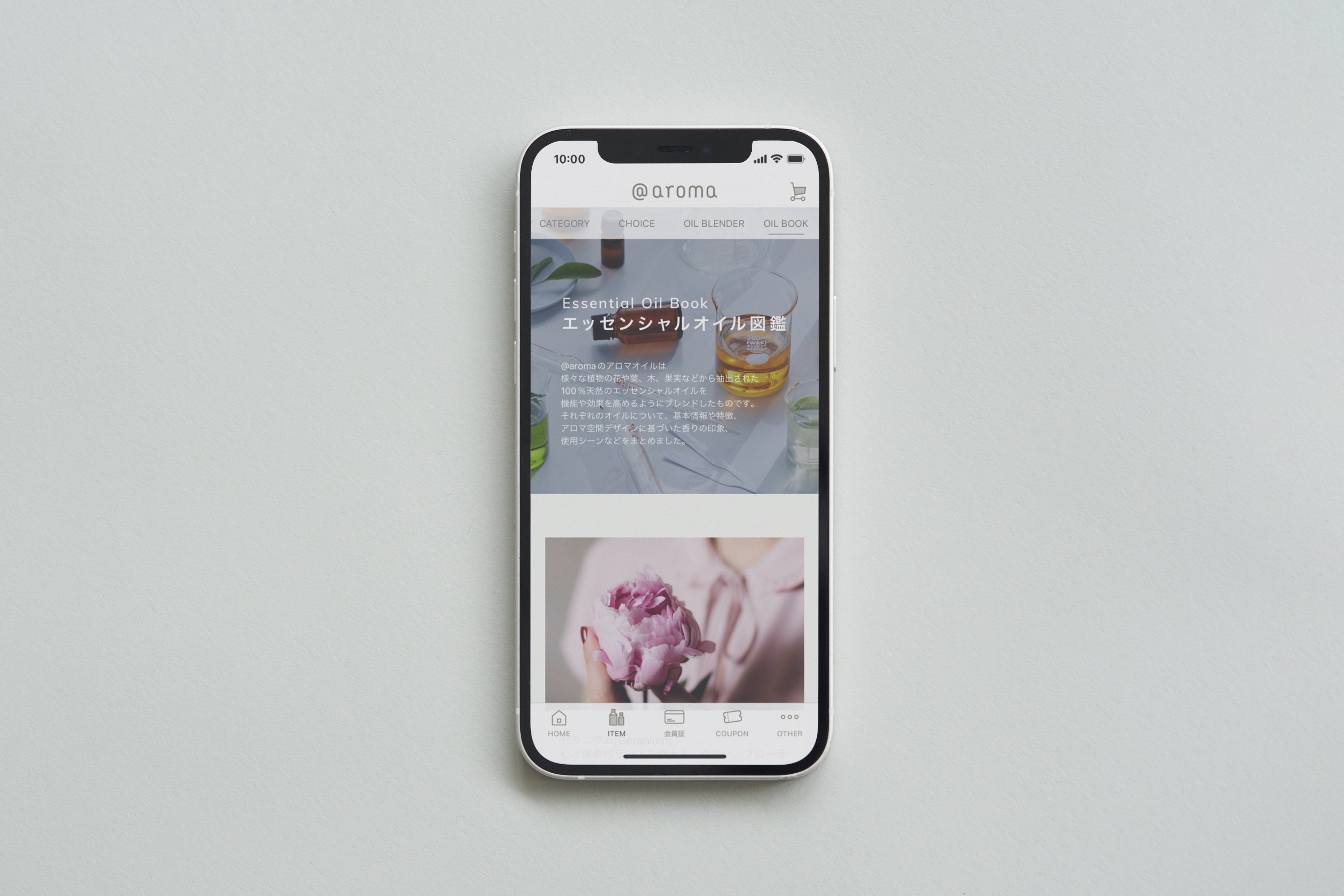 公式アプリにはアロマオイルやディフューザーを様々な切り口でご提案するコラム記事や、WEB上でオリジナルアロマを制作できる「アロマオイルブレンダーWEB」、シングルオイルの基本情報や効果効能がまとまった「エッセンシャルオイル図鑑」など、すきま時間に楽しめるコンテンツが盛り沢山です。