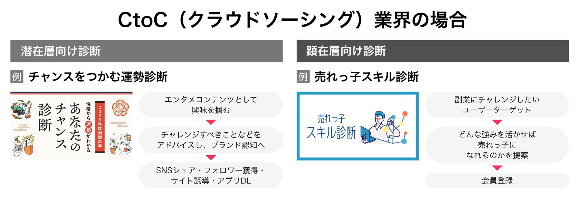 記事をみて、現在、自社に合う診断企画やロジックなどご相談いただくと本来有償のコンサルを無料でプレゼント