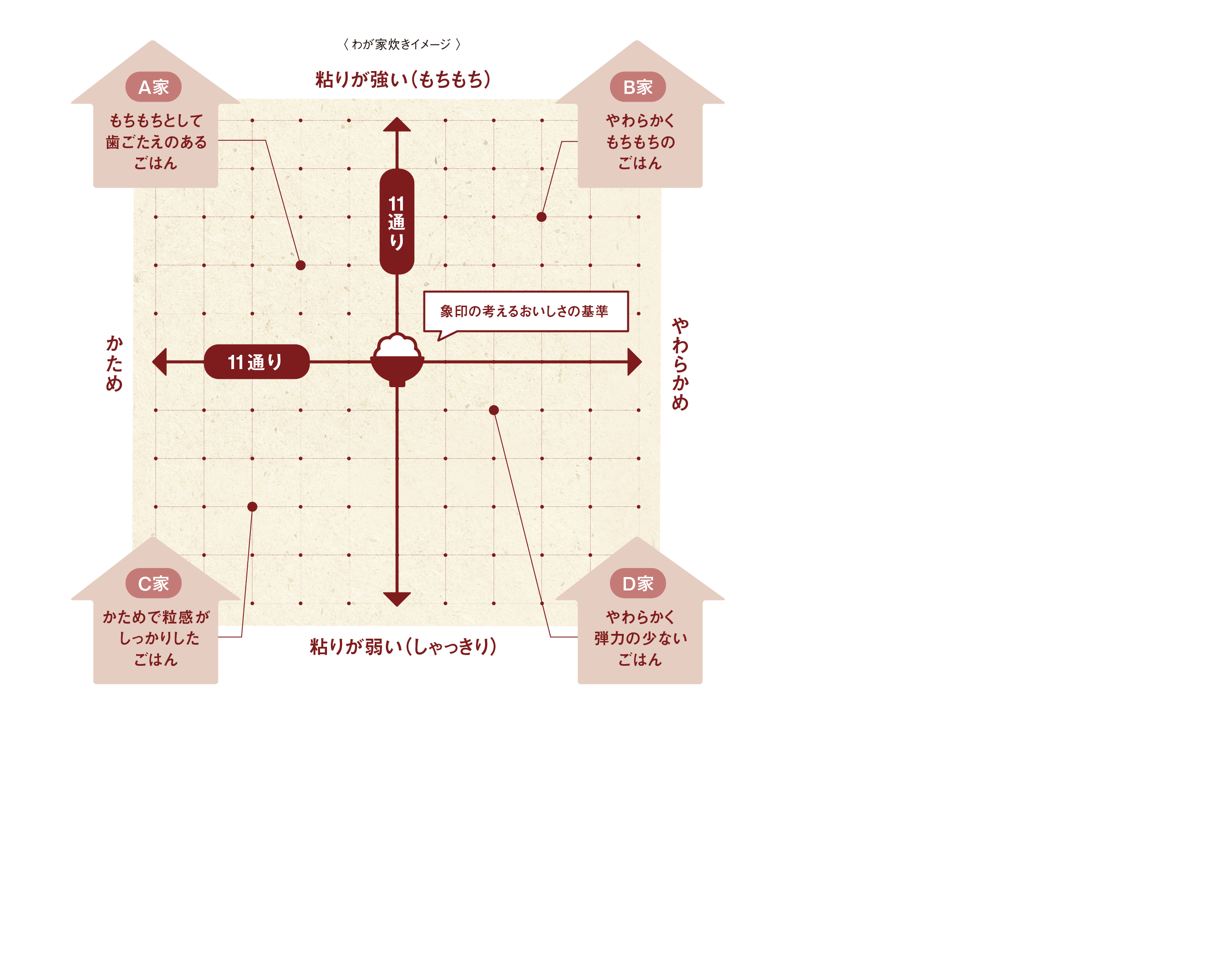 ・「わが家炊き」メニュー:家庭ごとの好みの食感に進化する。