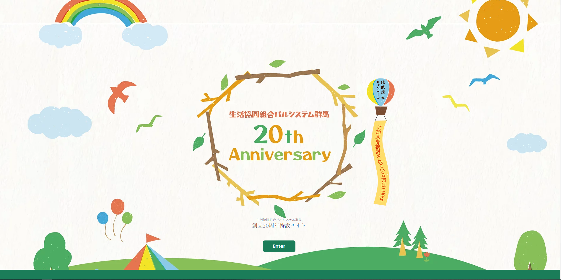 生活協同組合パルシステム群馬(高崎市中大類町、反町幸代理事長) は、2022年に創立20周年を迎えました。このたび、20周年を記念した記念ロゴマークを制定するとともに、記念サイトを公開しました。今後もさまざまな記念事業を予定し、組合員をはじめ地域や支えていただく全ての皆様に感謝を伝えていきます。