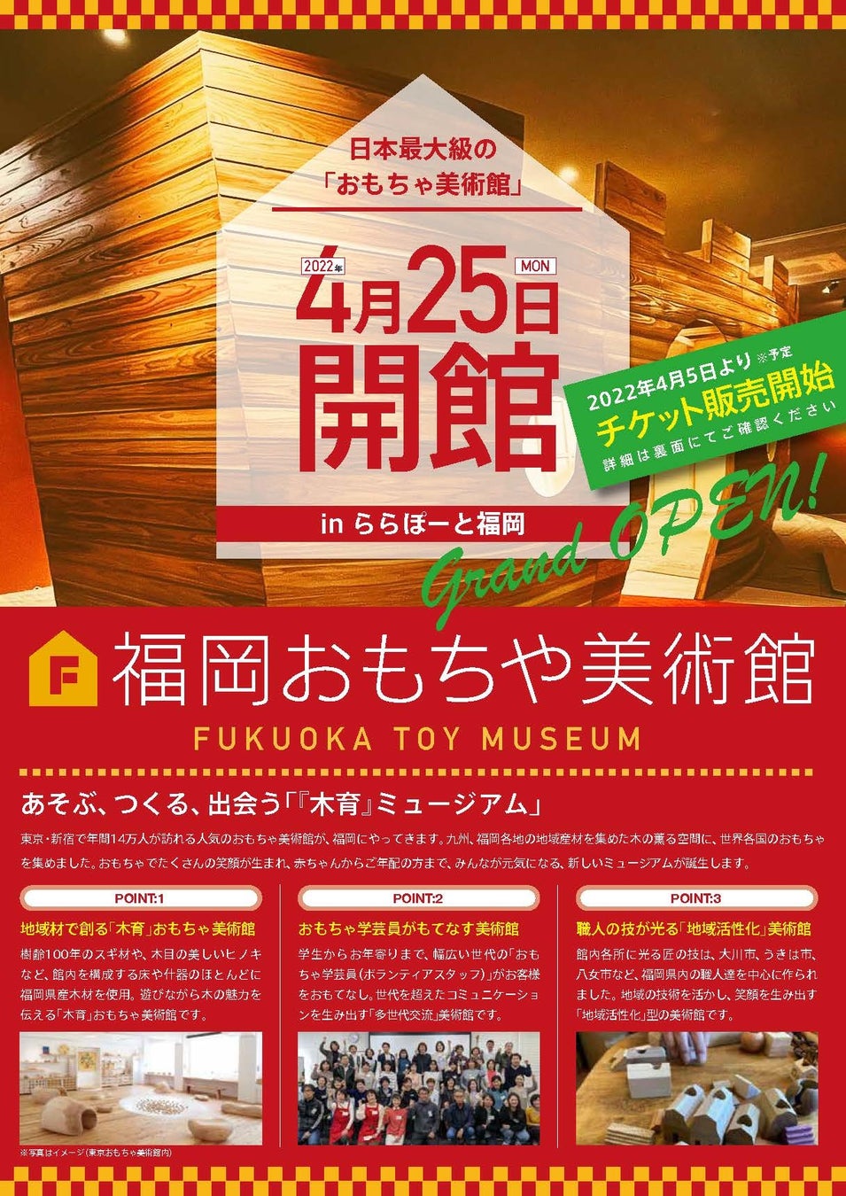 福岡おもちゃ美術館 入館予約受付開始 ~ららぽーと福岡に4月25日開館~