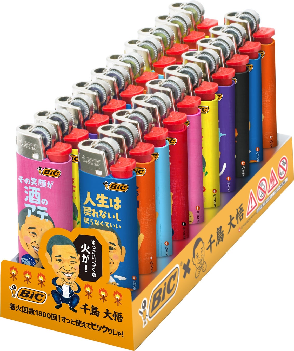 フランスの世界大手ステーショナリーおよびライターブランドSociété BIC(ソシエテ・ビック)の日本法人BICジャパン株式会社(東京都中央区、代表取締役: 吉田 悟)は、昨年好評を博したコラボライターシリーズ第1弾「長州力 迷名言ライター」に続く第2弾として、人気芸人でBICライターの愛用者でもある千鳥の大悟さんとコラボした新商品「大悟のいっぷく名言ライター」を開発しました。バラエティ番組などで話題の大悟さんならではの、ユニークで奥深い、ツッコミどころ満載な「名言」の数々を、ポップなイラストとともにあしらった本コラボ商品は、ストレスの多い現代生活に必要な笑いと息抜きのひと時をお届けします。2023年2月11日(土)より全国のファミリーマート、及び吉本劇場併設の各売店にて販売開始のほか、特設サイトもオープンいたします。