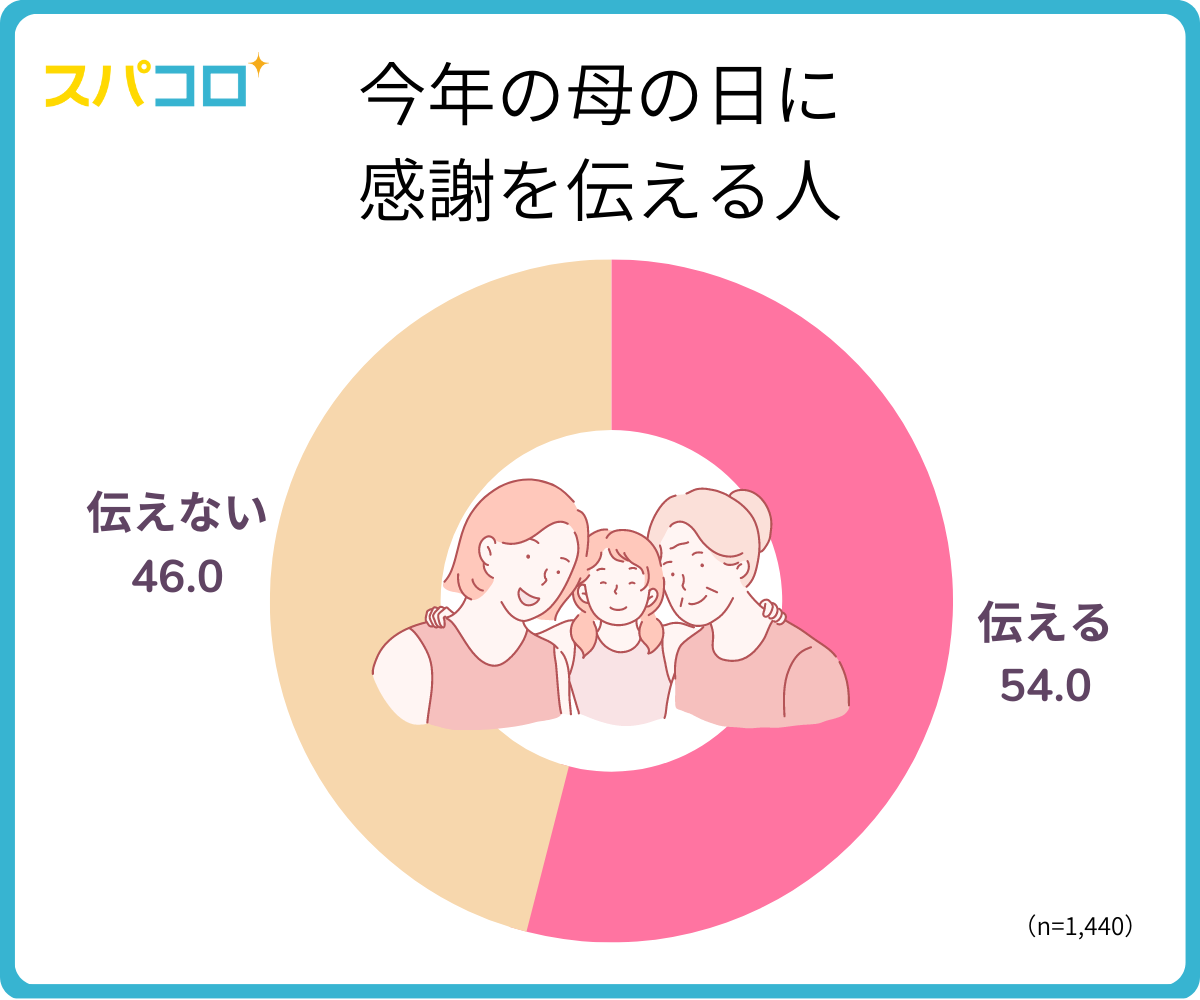 今年の母の日に「感謝を伝える」と答えた人の割合は54.0%でした。