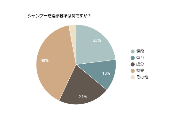 続いて「値段」で23%。どんなに良いシャンプーでも買い続けないと効果を実感できないのです。自分が続けやすい価格帯を探すこともとても大切だと言えます。