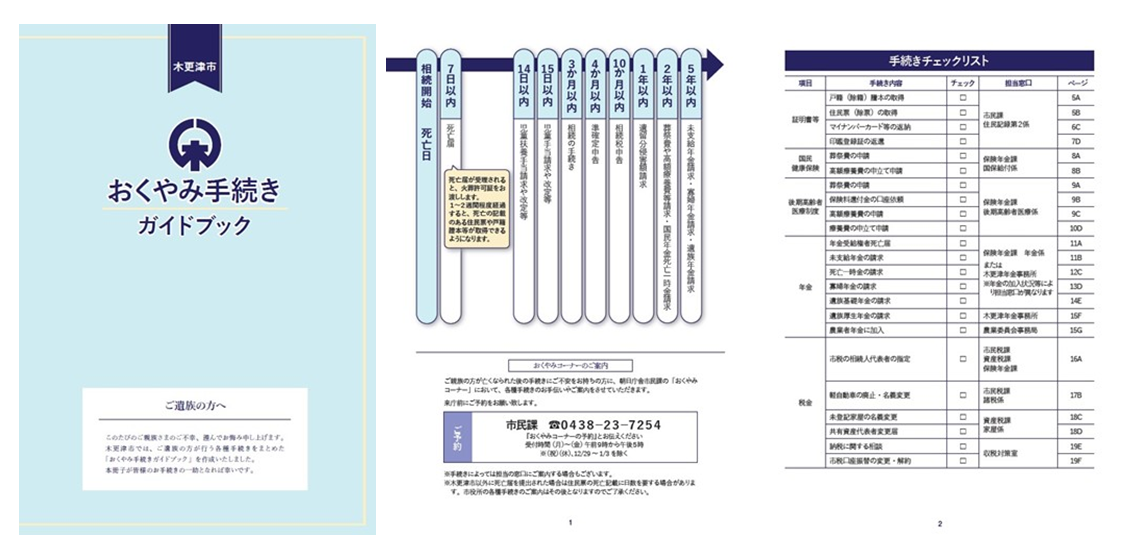 死亡届の提出や年金受給の停止など、逝去後の各種手続き一覧や関連窓口を掲載したハンドブックです。自治体と協働刊行し、遺族に配付することで、大切な方を亡くした遺族の負担を心身ともに軽減します。