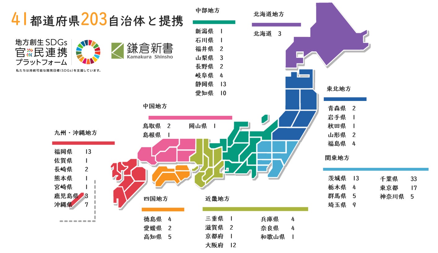 超高齢社会を背景に需要が高まる「終活」に関するさまざまなサービスを提供する株式会社鎌倉新書(東京都中央区、代表取締役社長COO:小林 史生、証券コード6184、以下「当社」)の官民協働事業は、2022年10月17日、地方自治体(以下「自治体」)との提携数が41都道府県203自治体となったことをお知らせします。当社は今後も、内閣府運営の「地方創生SDGs官民連携プラットフォーム」の一員として、高齢者やそのご家族の支援を通じて住民が安心して暮らせる地域づくりに貢献します。